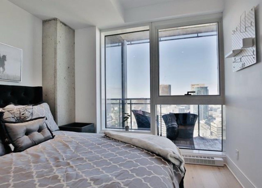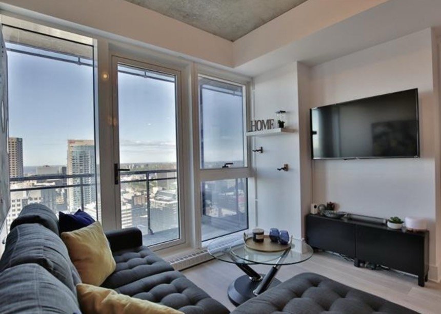 Bienvenue au luxueux projet de condominiums TOM. Condo aux finitions haut de gamme situé au 33e étage, avec un grand balcon offrant une vue imprenable sur Montréal. En plein coeur du centre-ville, à proximité de tout ce que la vie montréalaise a de mieux à offrir. Lumière naturel en abondance toute la journée construction en béton entre les étages pour une insonorisation incontournable pour vous donner une vie privé ! Piscine intérieur avec sauna et spa ainsi qu'un Gym vous donnera une qualité de vie hors pair! Un Gardien de sécurité est present 24h/7! Ideal pour étudiant , jeune professionnel ou comme investissement facile à louer!